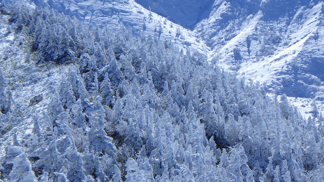 まだ午前中なので樹氷の景色が綺麗です。気温が上がれば樹氷はどんどん消えていきます。