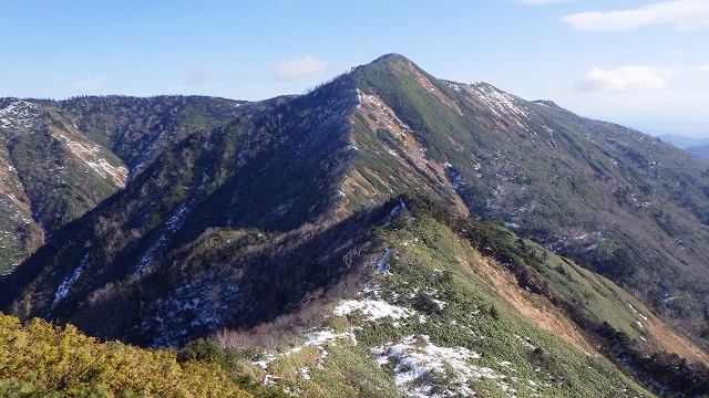 新潟県側に目を向けていくと、苗場山がどっしりと鎮座しています。右端は神楽峰でしょう。