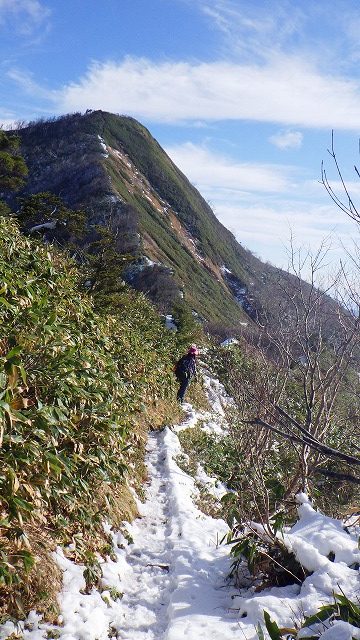 先日降った雪はほとんど融けて消えたようですが、日陰にはまだまだ残っていました。日中は風はほとんどなく、適度に気温も上がって登山には快適な気候でした。