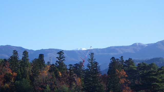 午前7時の開門時間に合わせて恐竜博物館へ一番乗り。開園時間の9時までロケーション抜群の庭園を散策していたら、真白い山がちょこんと頭を出していました。もしや霊峰白山でしょうか。