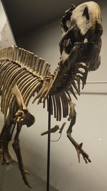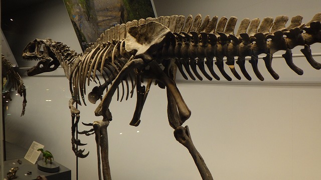 午前9時入館。まずは所狭しと並べられた恐竜標本の展示物に圧倒されます。さらに恐竜博士っぽい子供たちの興奮気味な熱気もすごいです。自分も小学生の頃は恐竜図鑑に夢中だったことが思い出されます。でも50年以上前の図鑑と現在の最新の研究成果とでは雲泥の差で、日本の恐竜研究は目覚ましい進歩を遂げていることがわかりました。