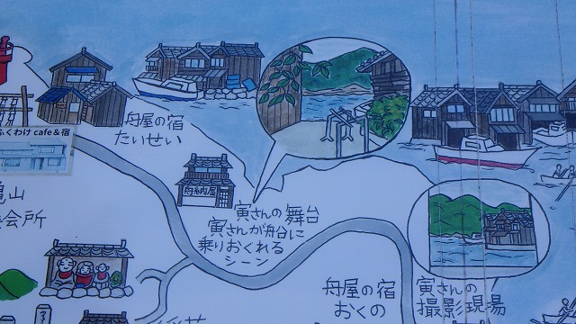 地元のおじさんに寅さんが泊まっていた舟屋を尋ねてみたら、親切に教えてくれて探してみました。今はお洒落なカフェになっていました。