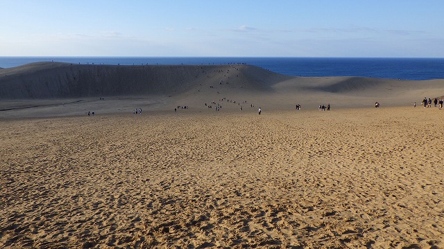 土曜日の休日とあって鳥取砂丘は観光客で大賑わいでした。しかしながら砂丘の入り口に立つと別世界が広がっていました。砂漠のように広がる砂丘の向こうの頂まで行ってみたくなります。