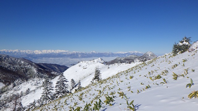 のんびりとマイペースでシール登行しながら、しばらく忘れていたBCガイドの勘を取り戻します。山頂からシークレットうらやまが見渡せました。どこでも自由にコースがとれるくらい雪が積もるのは、早くて年末くらいでしょう。