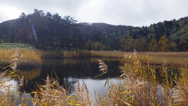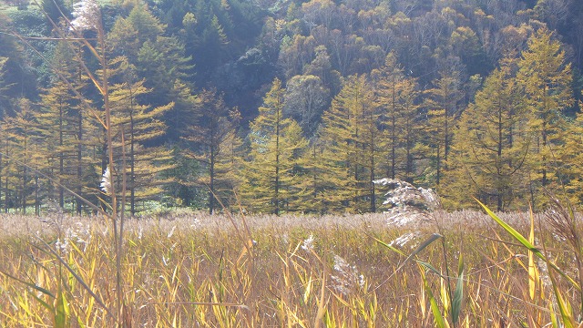 さすがにナナカマドの赤い色はもうどこにも見つかりませんでした。それでも、まだ落葉松や岳樺の黄色い葉っぱが緑に映えていつまでも見飽きさせない美しい姿で私たちを迎えてくれました。