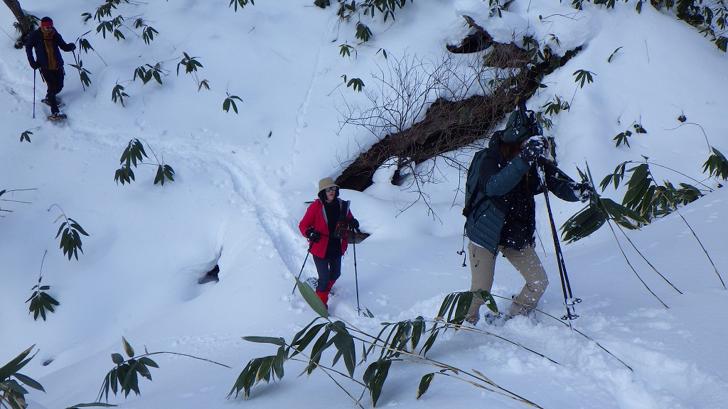 このところお正月の3日は、スノーシューガイドが恒例です。昨シーズンは年末から大雪が積もったので、うらやまのシークレットコースを歩きました。