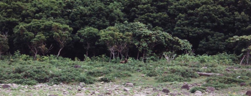 春、穴から出たばかりの熊に唸られた話はどっかに書いたが、まだまだ熊に出会ったり見かけたことはいろいろある。湖を泳ぐ熊をカヌーから見つけたことがある。深夜、奥利根方面にドライブしていて、民家が切れた辺りで子連れの熊に出会い、運転席から至近距離で対面したこともある。雪倉岳に山スキーに出かけたとき、向こうの山の斜面を逃げる熊をビデオに撮ったこともある。大勢の仲間と一緒で、私が発見者だったので、得意になってみんなに教えた。そういえば北海道の知床で、シーカヤックからヒグマを観察したりビデオ撮影したこともある。ヒグマはさすがに本州の熊とは比べられないくらいの貫禄がある。いくら熊と戦った男でもヒグマにはかなわないだろう。