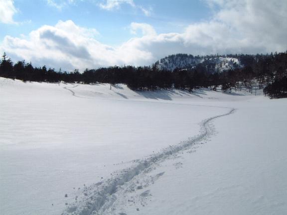 この冬一番の大寒波が正月にやってきた。今回、寒波が過ぎ去ったあとの好天を利用して、上信国境の秘峰大高山へ日帰り登山を試みた。登山口を8時過ぎに出発。新雪は脛までのラッセルだ。うろこ板なので、馬止めまではシールを貼らない。この冬一番の大寒波というと、昨年はたしか正月明けだった。その時は寒波の最中で、途中テントで1泊しながら渋峠までラッセル10時間のほろ苦い思い出がある。一応ザックにはビバークが出来るように、ツェルトやコンロ、上下のダウンウエアを偲ばせてきた。