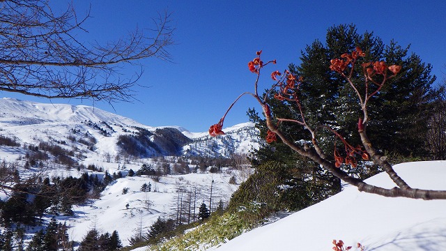 3連休前日の平日、静かな芳ヶ平湿原に訪れることが出来ました。どこにもトレースの跡が見当たりません。草津白根山は噴火警戒レベル2を継続中で、湯釜から半径1㎞以内は立ち入り禁止となっています。いつものことですが、火口壁の北東斜面から噴出している火山ガスの煙の様子が気になります。