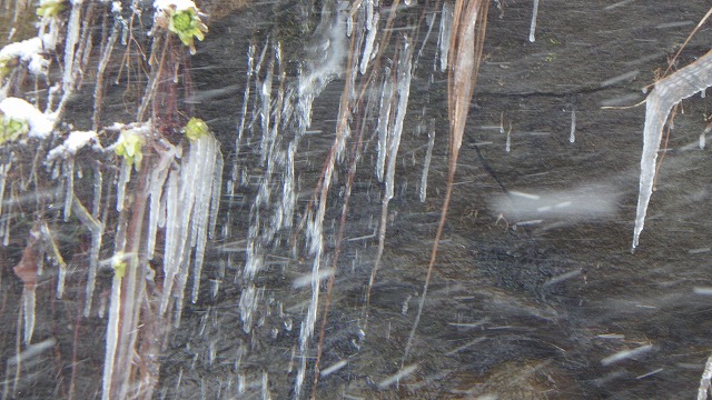 ガイドさんが小さな湧水の中に早くも若芽を出しているフキノトウを教えてくれました。まだ雪が少ないので見られますが、これからさらに積雪が増えると春までまたいったん埋もれてしまうそうです。