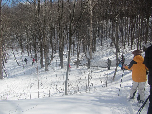 小学校の先生を目指している大学生の皆さんをガイドです。もう何年も毎年ゼミの合宿で来てくれています。今日は穏やかな青空に恵まれて、のんびりとスノーシューハイクが楽しめました。