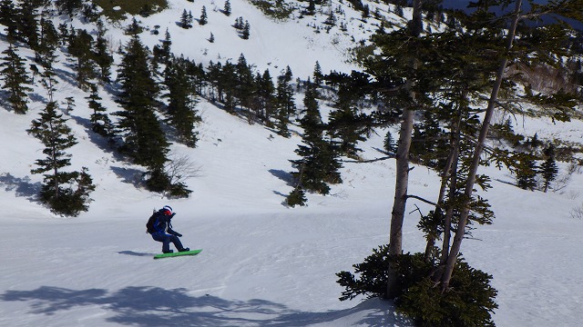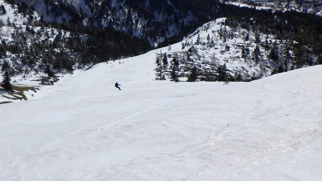 フィルムクラストっぽい雪面にも出逢えたりしました。どうやら今シーズンはモナカ雪の状態にはならずに春の締まったザラメ雪へと進行したように感じます。