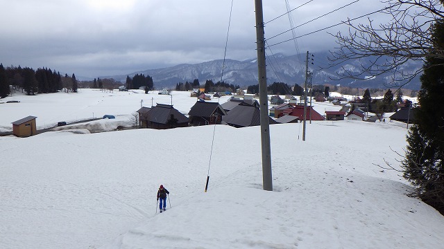 お昼近くまで出発をずらしたにもかかわらず雨粒が落ちて来てどうしようか迷います。でも良くなる予報なので、だらだらと準備を整えて歩き出します。雨のおかげか雪は柔らかくなって、雪国にようやく待ち焦がれた春がやって来たという風情を感じます。