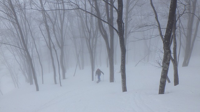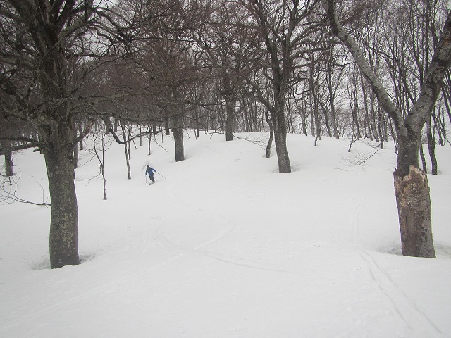 今日は私たち一人占めの鍋倉山だったようです。誰にも逢わずブナの森の尾根を快適に滑りました。