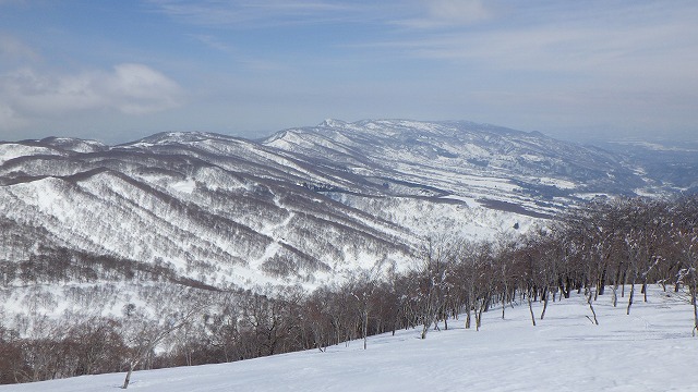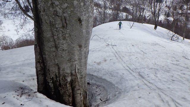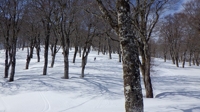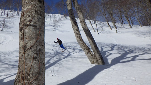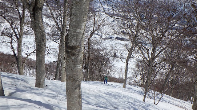 広がったり狭まったり、緩やかだったり急だったりと、ブナ林の尾根は次々と表情を変えてバックカントリースキーヤーを楽しませてくれました。