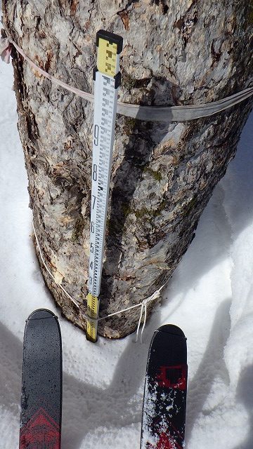 オヤマ沢田代手前で見つけた積雪深の測量計です。3m30㎝くらいでしょうか。この時期の残雪としてはやはり少ないかも。 でもGWに向けてこれからの気象条件で様子は変わるので、まだまだどうなるかは神のみぞ知るです。