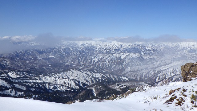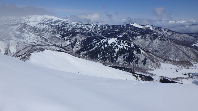 昨日の雨は高所では雪に変わったようで、数センチの新雪がありました。先日の守門大岳の時のアイスバーンとは違って、今日は滑りも楽しめそうです。
