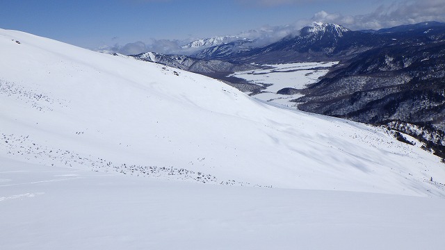 これだけ広いと先行者のシュプールはどこにも見当たらなくて、ワル沢を独り占めした気分になれました。