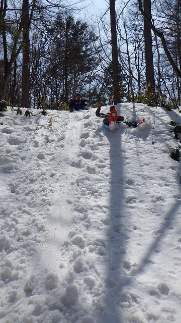 ソリ遊びに最適なスロープもいたるところにあって、子供たちは夢中になって遊びました。