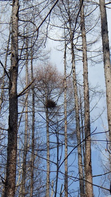 カラマツ林の高いところに巣がありました。これも何の巣か興味が湧きます。ほかにもたくさんわからないことばかり・・・
